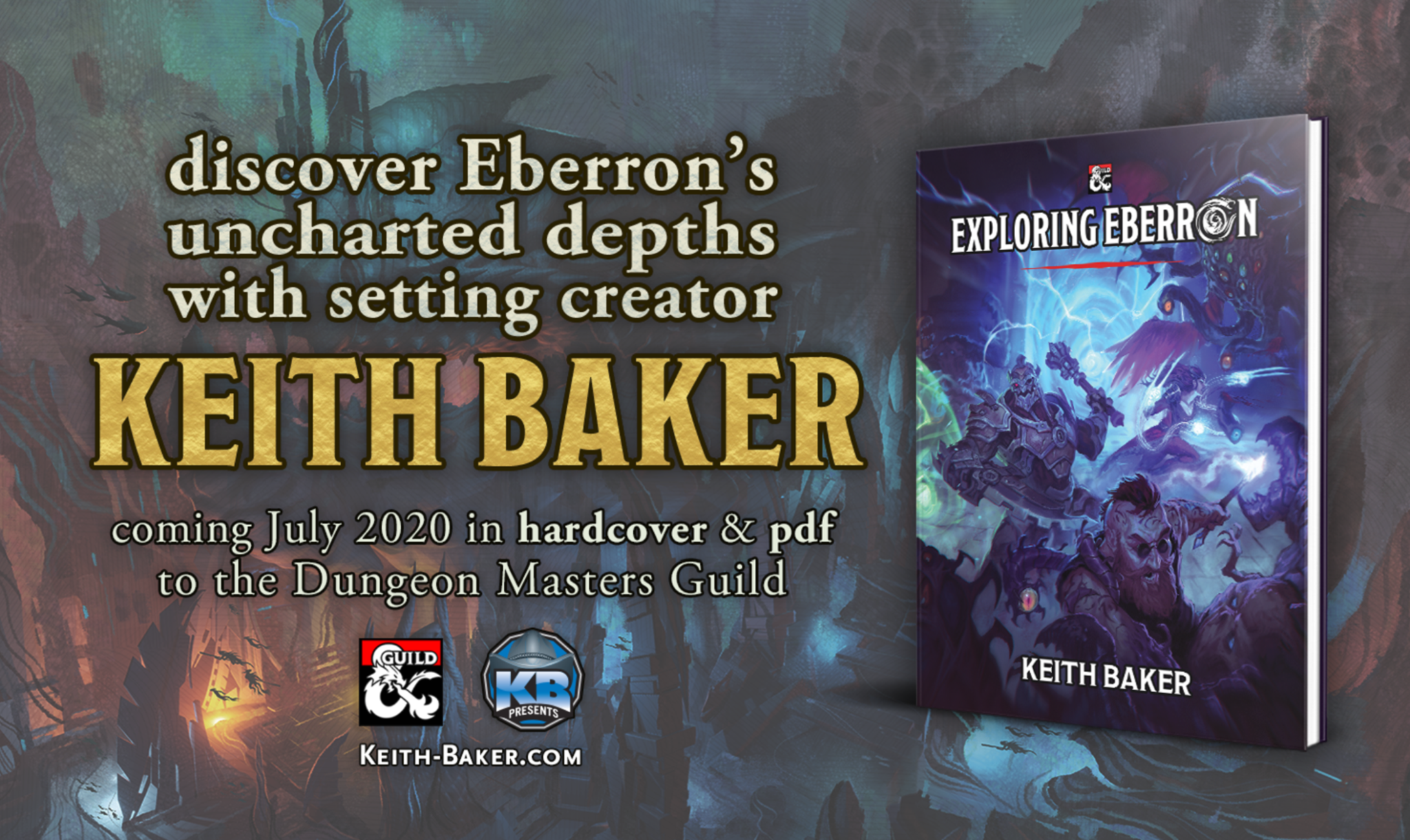 Exploring Eberron was originally planned for release in 2019. However, it became increasingly evident that for Keith to do justice to the many topics planned, and to write about them in the depth that he’s always dreamed of, the book would need to be much longer than originally planned. The chapter on the Planes of Eberron was the last one written, and by far the longest. It could very easily have been an entire book on its own, but we knew that section held some of the most anticipated content. So rather than cut the material on the planes for a later hardcover (which would delight absolutely nobody), we instead adjusted our timeline to plan on a Spring 2020 release.