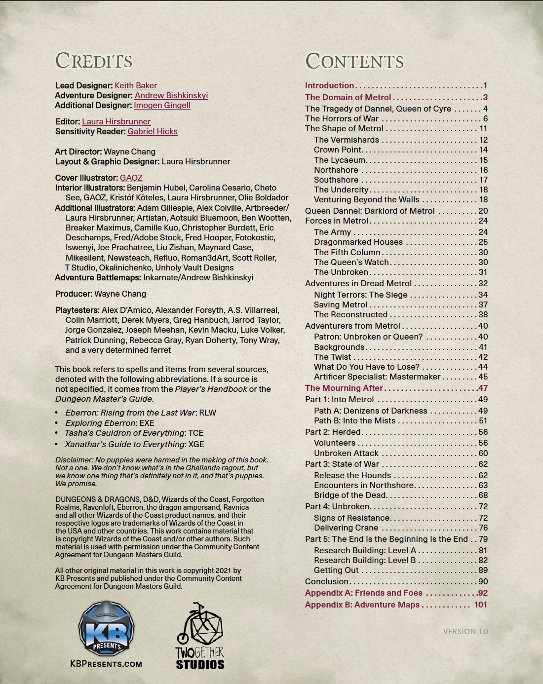The short form is that if Dread Metrol brings the themes of Ravenloft to Eberron and can serve as a bridge between the settings. But if you know nothing about Ravenloft, you can still explore the horrors of war in Metrol. And if you're planning a Last War campaign, the sourcebook provides a snapshot of a city that now only exists as a ruin and a queen lost to the Mourning.