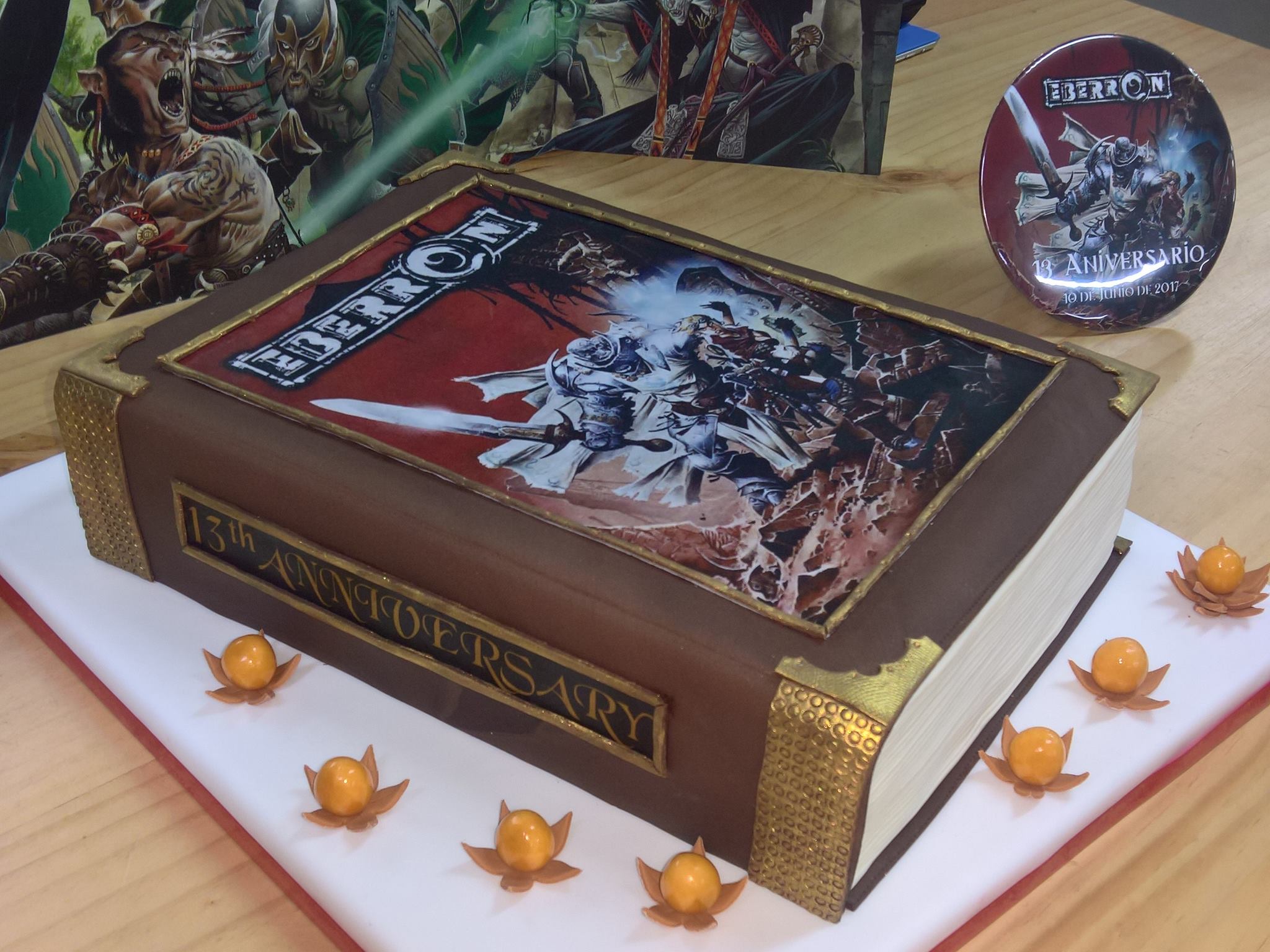 I first began working on Eberron in 2002, but the Eberron Campaign Setting was released in June of 2004. So the setting has just turned thirteen, and anyone who knows Eberron will know that thirteen is a number with special significance. There are thirteen planes, thirteen moons, thirteen dragonmarks... although all too often, one of these thirteen is destroyed or lost. While here in the United States we're still waiting for Eberron to be unlocked for 5E, a gaming community in Peru organized a month-long Eberron celebration in honor of its 13th anniversary. The tome pictured above is a cake produced for that celebration, and it is one of the most fantastic things I've ever seen.