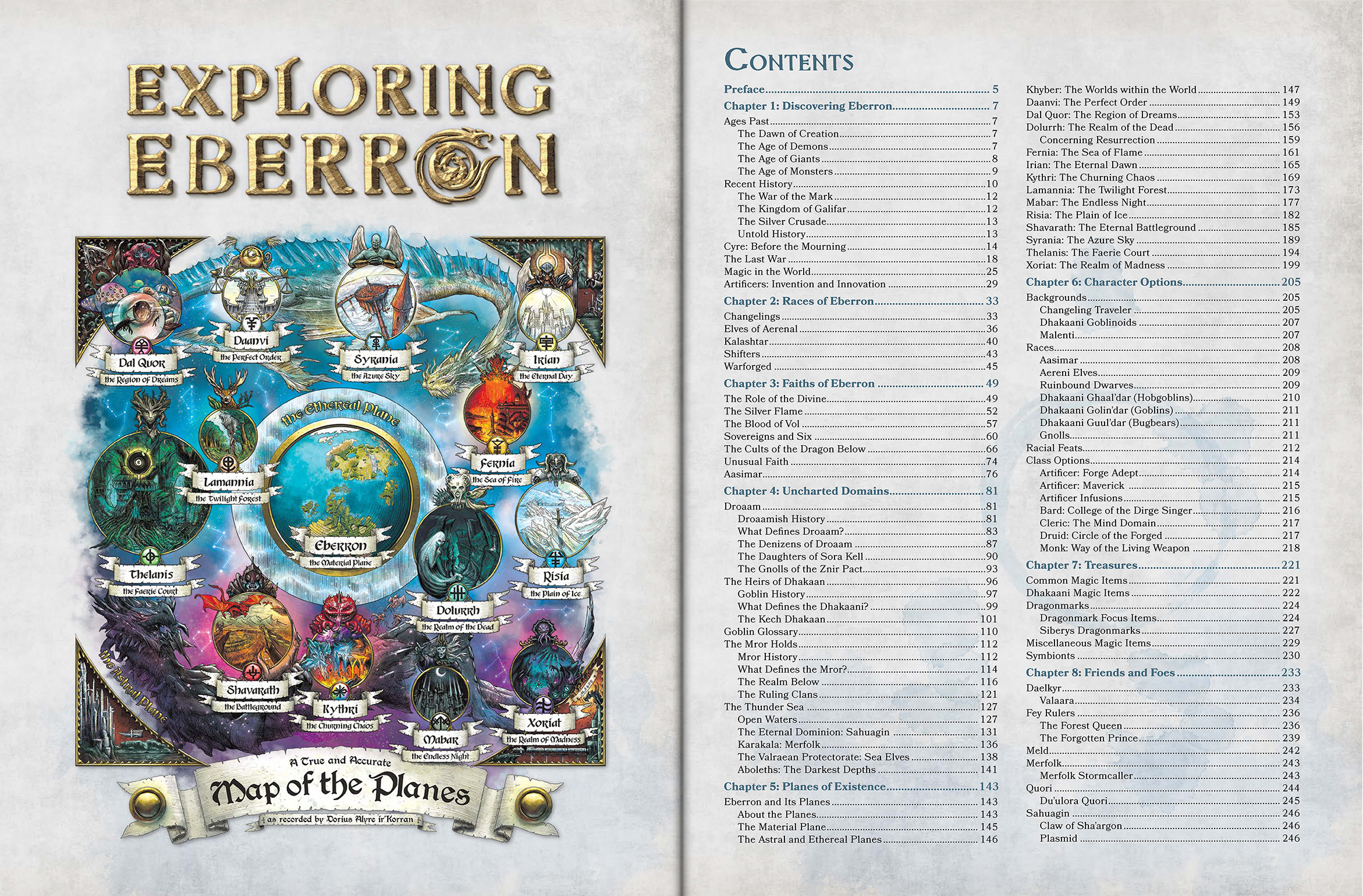 Wayne, Laura, Will and I have spent over a year developing this book, and I am thrilled to finally unleash it on the world. The excerpt above is one of our favorite pieces of art—Tira Miron, whose sacrifice inspired the modern-day Church of the Silver Flame. I would walk through all the content that's contained in the book, but why type all of those words when I can just share the Table of Contents, along with my absolute favorite piece of art: Marco Bernardini's map of the planes.