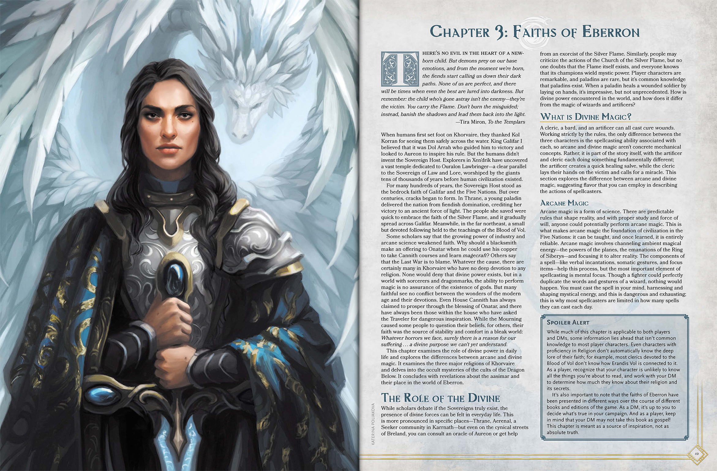 While there are still many pieces of Eberron I look forward to exploring in future Eberron, this has been a fantastic opportunity to deal with topics I've always wanted to explore in more depth but never been able to explore in the official books: the planes of Eberron, aquatic civilizations, the Dhakaani goblinoids. the monstrous nation of Droaam. It investigates familiar ideas—presenting my personal vision of the faiths of Eberron, and expanding on the changlings, shifters, warforged, and kalashtar—while also building on concepts we developed for Rising From The Last War but couldn't develop in depth. like the dwarves of the Mror Holds and their ongoing war against the daelkyr.