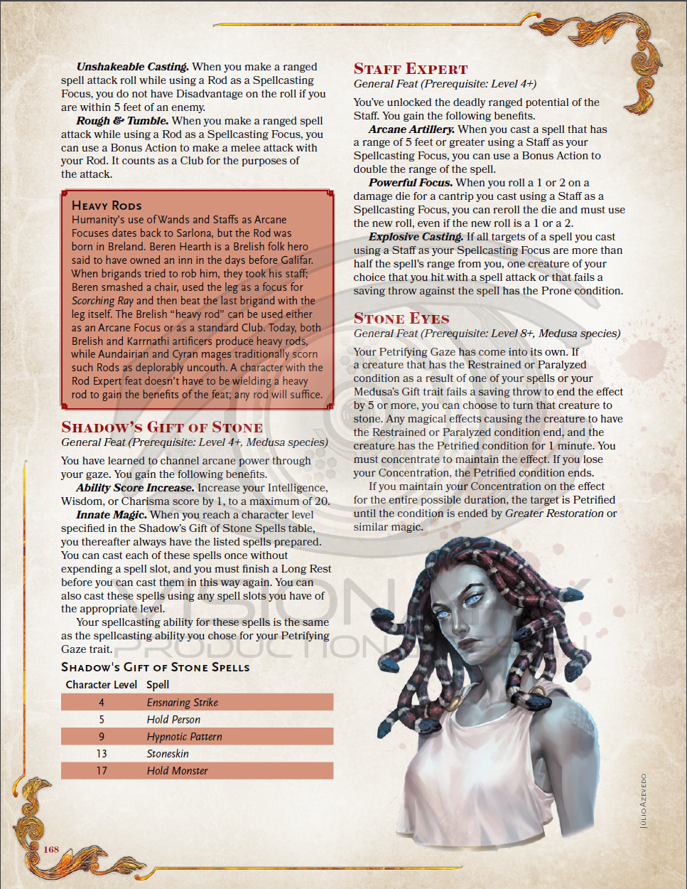 - Species Feats. Frontiers includes playable options for a number of species traditionally considered to be monsters—Harpies, Gargoyles, Medusas and more. In order to balance these, we suggest that the versions of these creatures seen in the standard Monster Manual stat block reflect mature creatures with fully developed abilities. Not all gargoyles have wings, and while the medusa's gaze CAN turn you to stone, in a young medusa it's a slower process. Feats allows a character playing one of these species to develop the full abilities over time—or they can just decide that their gargoyle adventurer is made of softer stone!