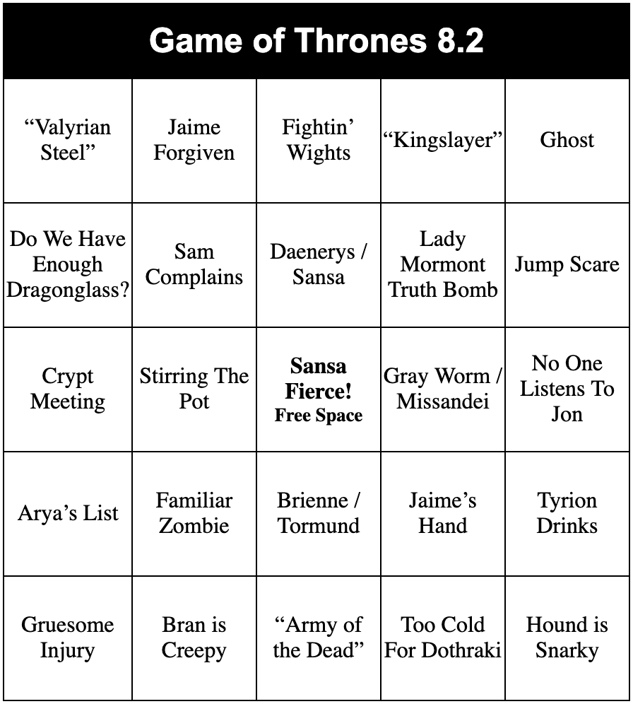 Game of Thrones Bingo: Episode 8.2