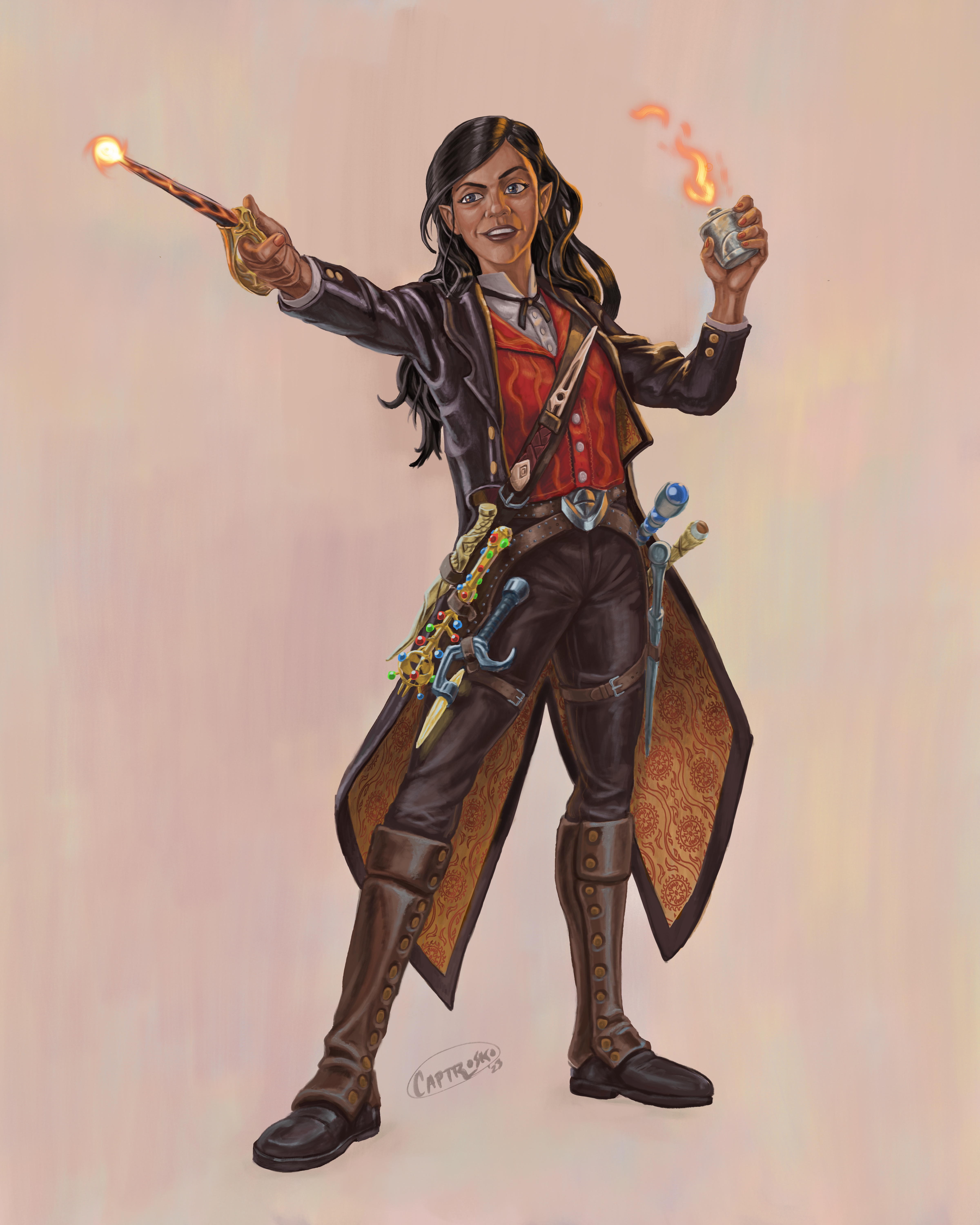 ... We ended up with the wandslinger Three Widow Jane, depicted here by Matthew Johnson. I'll be using this same process to develop the characters for this new campaign; if you'd like to be involved, check out the Patreon!