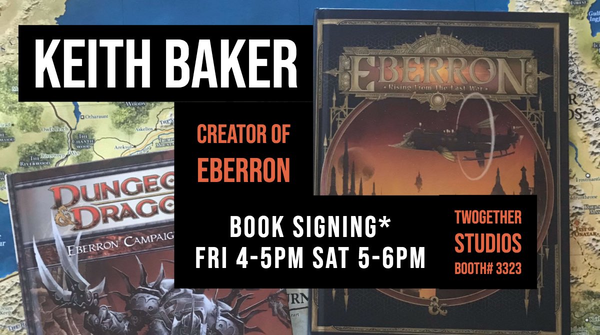 If you want to talk about Eberron, you can do that too! I will have dedicated signings Friday from 4 PM - 5 PM and Saturday from 5 PM - 6 PM, but if I'm at the booth and not in the middle of something else, I'm always happy to answer questions or sign books. Since people sometimes forget to bring the books they want signed, this year we have special bookplates you can have signed, featuring art from Exploring Eberron.