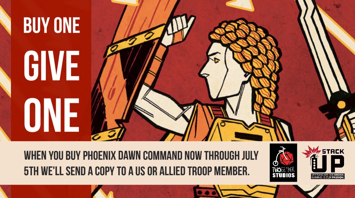 What's that? You've watched Starter Kit and you want to get a copy of Phoenix of your very own? If your local game store doesn't have a copy, you can get it from our website or on Amazon. In addition, at the moment, for every copy of Phoenix we sell, we're donating a copy to StackUp.org—a charity providing games and support to veterans and active duty soldiers. Originally we set this to end on July 5th—when the final episode of Starter Kit airs—but we're extending it through July 12th.