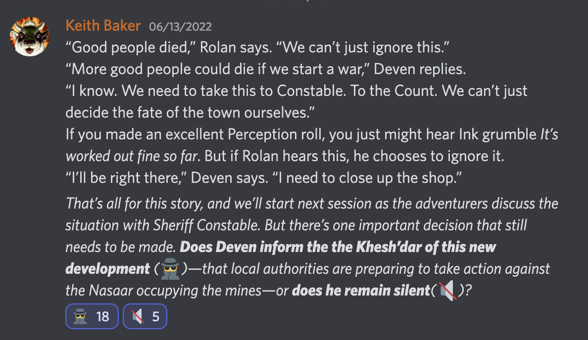 While only a few people get to play in each session, the story belongs to everyone. I used Patreon polls to create the characters and to establish key directions for the story. I have a Threshold Discord channel where people can discuss the campaign—and I occasionally do choose-your-own-adventure style story hours on Discord, where patrons can vote on things that happen between sessions. That's going to be especially important in this Siberspace campaign, where months may pass between each session—and negotiations or decisions made by the leaders of the Dragonhawk Initiative could have a vital impact on the next mission. I'll also be creating new content for the campaign—interstellar hazards, random encounters, navigational challenges—that I'll be sharing with patrons.