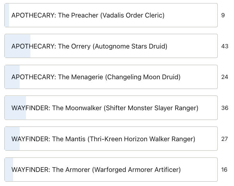 So every patron gets to be part of the story, whether or not they play in it. This is especially true right now, as we're building the foundation of the campaign. Over the course of the week, I've been running polls on Patreon and discussions on Discord. The patrons have chosen the Dragonhawk Initiative—Aundair's feytouched explorers—as the focus of the campaign, and we've been working through the characters. I've pitched a variety of interesting concepts, but even I have been surprised by some of the outcomes; I never expected Dragonhawk's captain to be an Aundairian noble cursed into the shape of a grung, but the patrons have spoken and we have our frog prince. Currently the final character poll is active on Patreon, determining the nature of the ship's medic and chief scout; it runs until the morning of Saturday, August 20th, so if you want to help shape the Dragonhawk crew, now's the time!