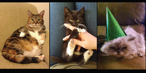 Last fall, an online discussion left Jenn & I brainstorming ideas for games about the wild and unlikely adventures of cats. It should have ended there, but something about the idea stayed with me and I decided to make it as a thing to share with friends. I love games that encourage storytelling; it's my favorite aspect of Gloom. And when you look at a picture of a cat, it's easy to imagine possibilities. Can they travel through time? Do they have a plan to take over the world? I asked friends to share pictures of their cats, and over the course of a few months I tinkered together a prototype. I didn't expect it to go any further than that, but as we played it with friends, we just found that it was a lot of fun. Looking at an adorable picture of a cat makes bad times better, as does sharing stories and laughter with friends. So Jenn and I decided that we wanted to make this game... so here we are.